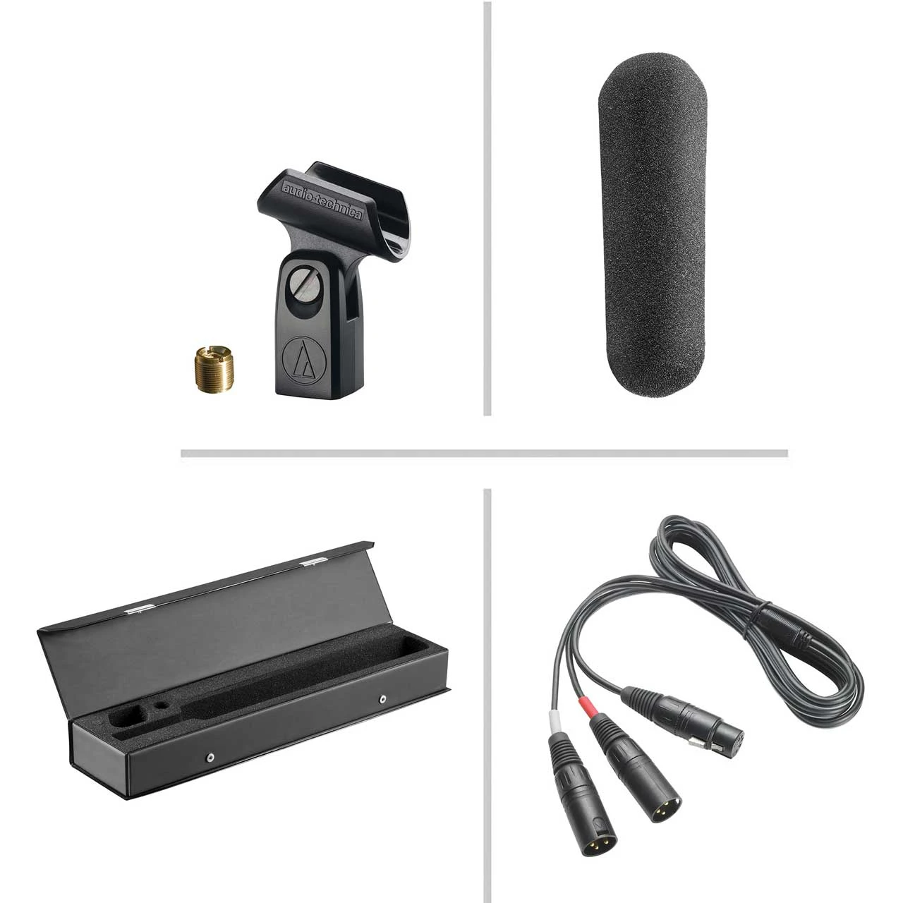 Based on models originally developed for use in the broadcast of the Sydney Olympics in 2000, the Audio-Technica BP4029 (9.29″ long) Stereo Shotgun model is engineered for high-end broadcast and production use. This microphone feature independent line-cardioid and figure-of-eight elements configured in an MS (Mid-Side) arrangement with switch-selectable internal matrixing. The BP4029 innovative microphone allows sound recordists the choice of selecting a left-right stereo output (wide or narrow) via the microphone’s internal matrixing system or choosing discreet Mid-Side signals for later manipulation, a flexibility not available from any other manufacturer.