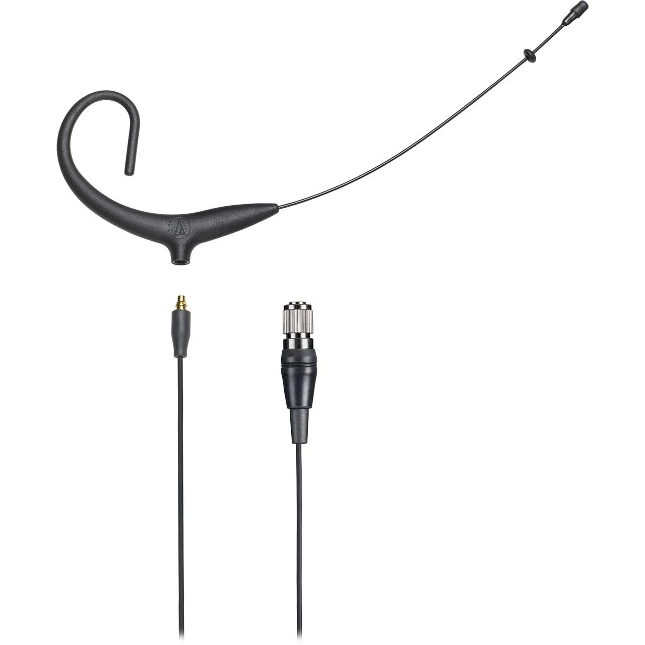 XLRM-type connector. A recessed switch in the power module permits choice of flat response or low-frequency rolloff (via integral 80 Hz high-pass UniSteep® filter) to help control undesired ambient noise. The microphone comes equipped with a power module, a cable clip, a dual-ear mount, two windscreens, two element covers, a moisture guard, a belt clip and a protective carrying case. The microphone is available in black and beige. The BP892xcH terminated with a cH-style screw-down 4-pin connector for use with Audio-Technica wireless systems featuring cH-style connector