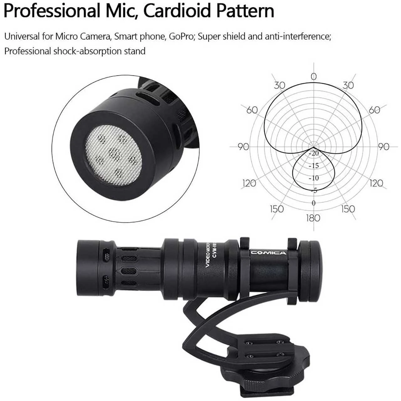 Professional Cardioid Directional Mic: CVM-VM10-K4 mini microphone is mainly made of aluminum material, the included shock-absorber can dramatically reduce the noise from vibrations.