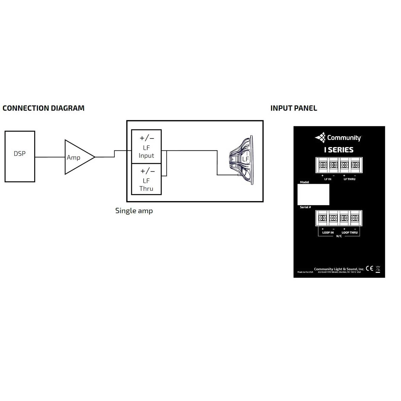 I SERIES similar-sized rectangular enclosures, construction, finish and aligned suspension points for seamless flown array integration. Medium power, 700W(+) continuous power handling, ferrite woofers. User selectable single amp or dual amp operation on the dual subwoofer models. Rubber feet included for floor installation. Easily configured low profile rigging hardware available for multiple applications (see Accessories).