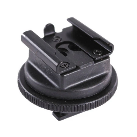 This accessory shoe adapter allows the conversion of the Sony video accessory shoe to a standard accessory shoe. It locks onto the Sony shoe for a secure fit. Black finish.