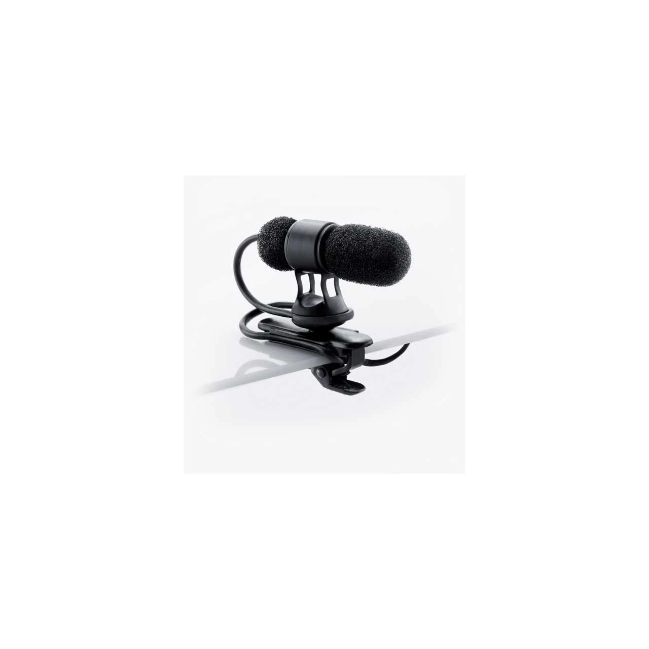 This cardioid condenser lavalier microphone is delivered with a pre-mounted black pop filter in a holder with an integrated shock mount, fixed on a clip. An additional white pop filter is also included. Because of the flexible and practical mounting solution, the mic can easily be turned in all directions so it fits both left- and right-buttoned shirts.