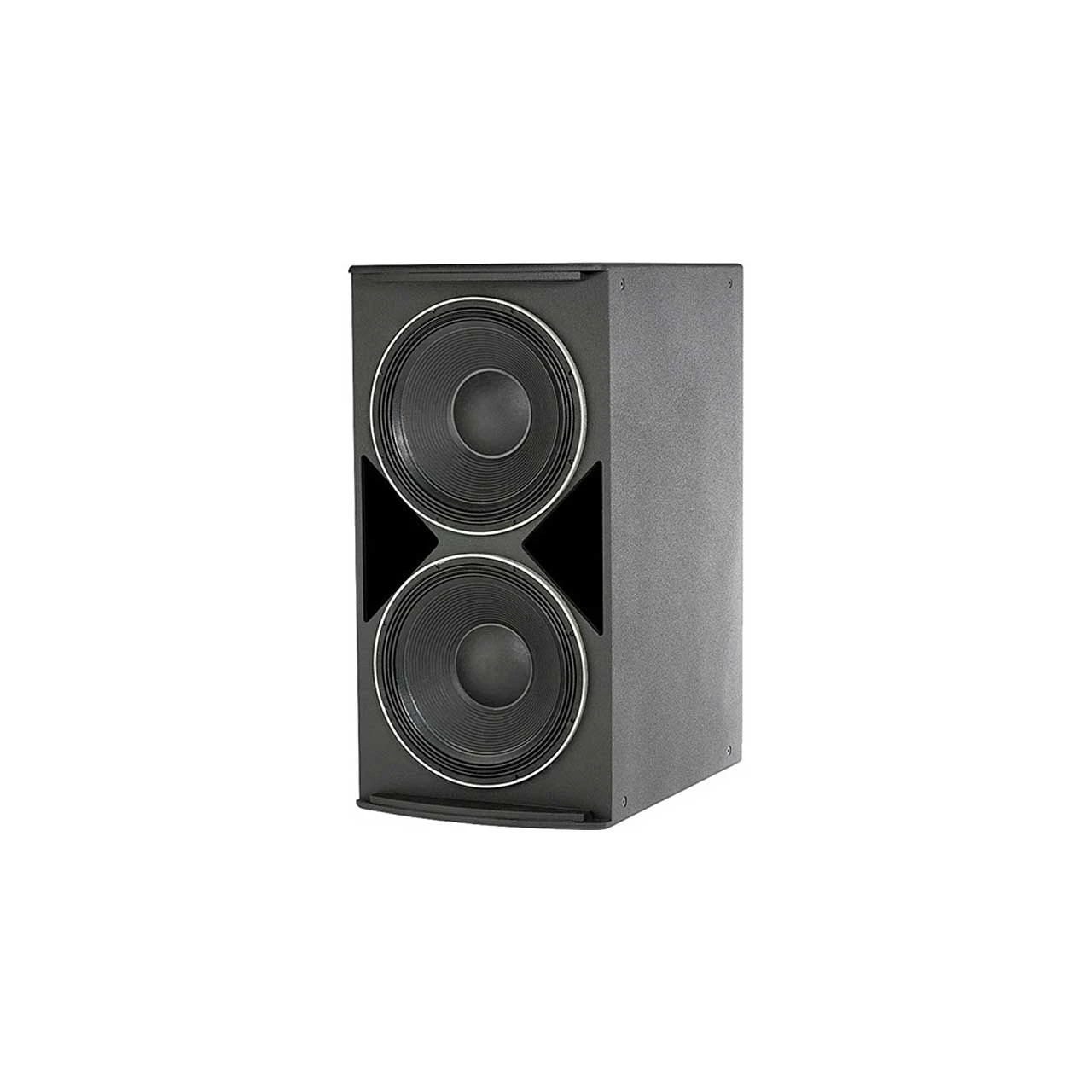 The ASB7128 is a high power, lightweight front-loaded vented subwoofer enclosure housing two of JBL’s exclusive 2269H Ultra Long Excursion 18″ Differential Drive woofers. This woofer features neodymium magnet, dual voice coils and dual gaps, JBL’s exclusive Vented Gap Cooling and ultra robust composite cone for high excursion and extra long life. Woofer is capable of a peak-to-peak maximum excursion of 3.5″.