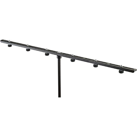 The black 23560 Microphone Bar with 5/8″ Locking Screws from K&M is a steel bar with six knurled handles for holding microphones.