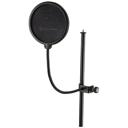 The K&M Popkiller – a world-wide classic. For stands with diameter of up to 0.91″. Double nylon screen for superior performance. Unobtrusive black round filter frame. Non-marring locking screw prevents scratching of mic stand.