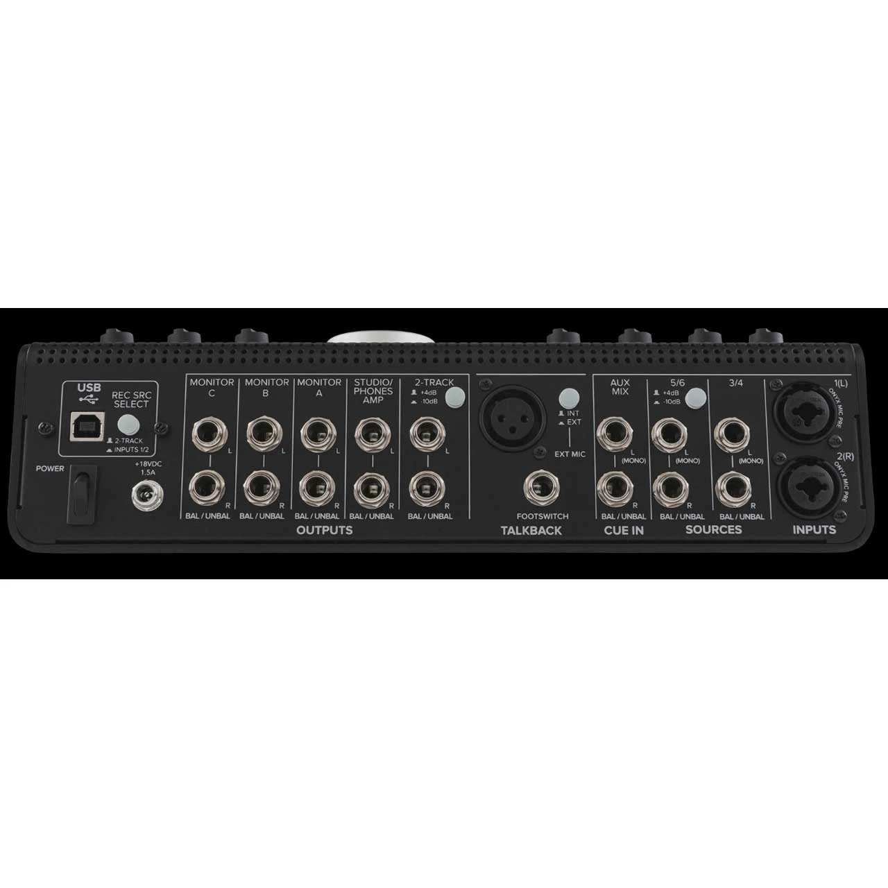 - Two boutique-quality Onyx mix preamps including phantom power for condenser microphones