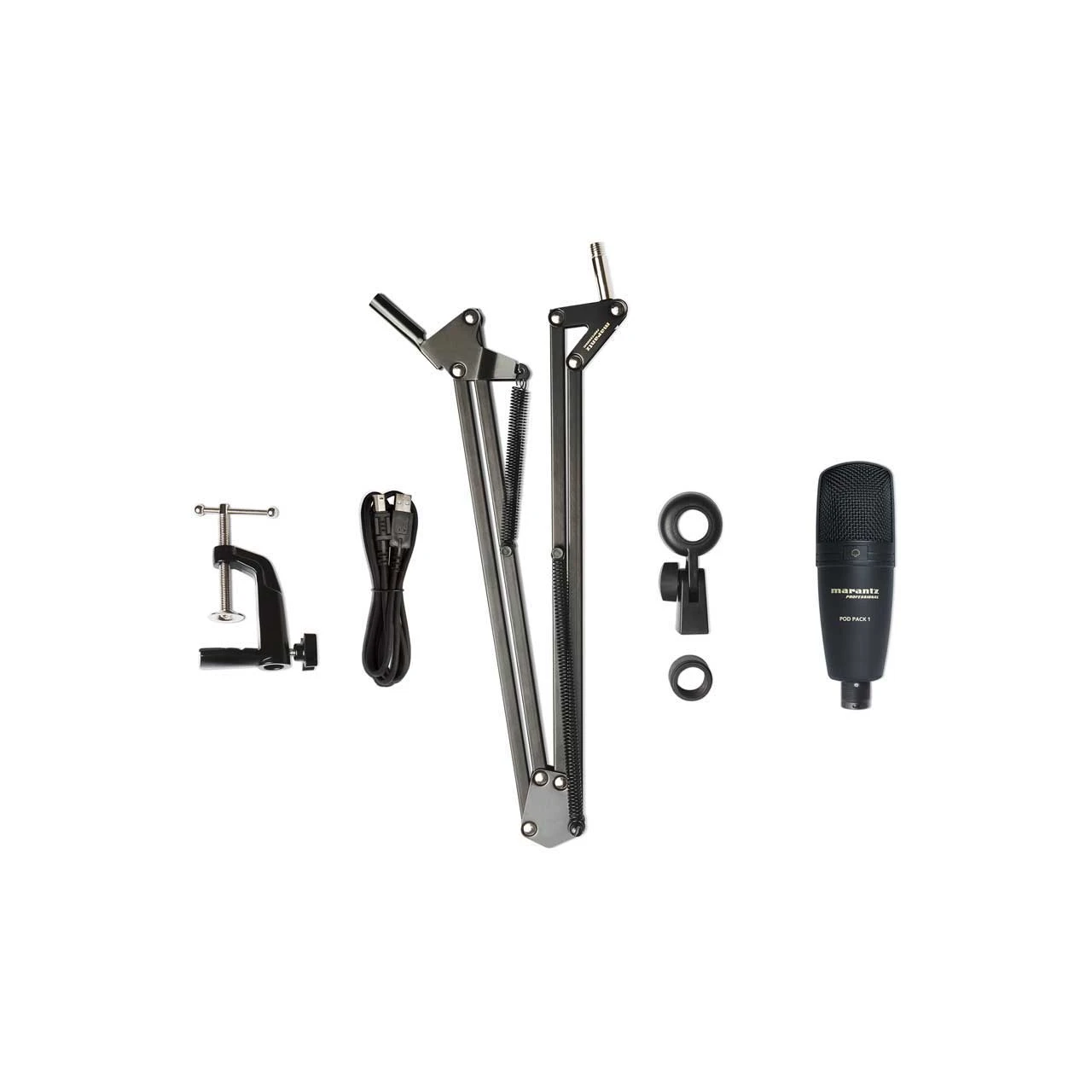 The Marantz Pod Pack 1 is a professional upgrade to any announcers studio. The kit consists of a high-quality USB condenser microphone paired with a fully-adjustable suspension boom arm, keeping the desk clear and the microphone always in position for podcasting, on-air or voiceover applications. Assembly is a snap and the articulating boom clamps securely to nearly any desk or table surface.