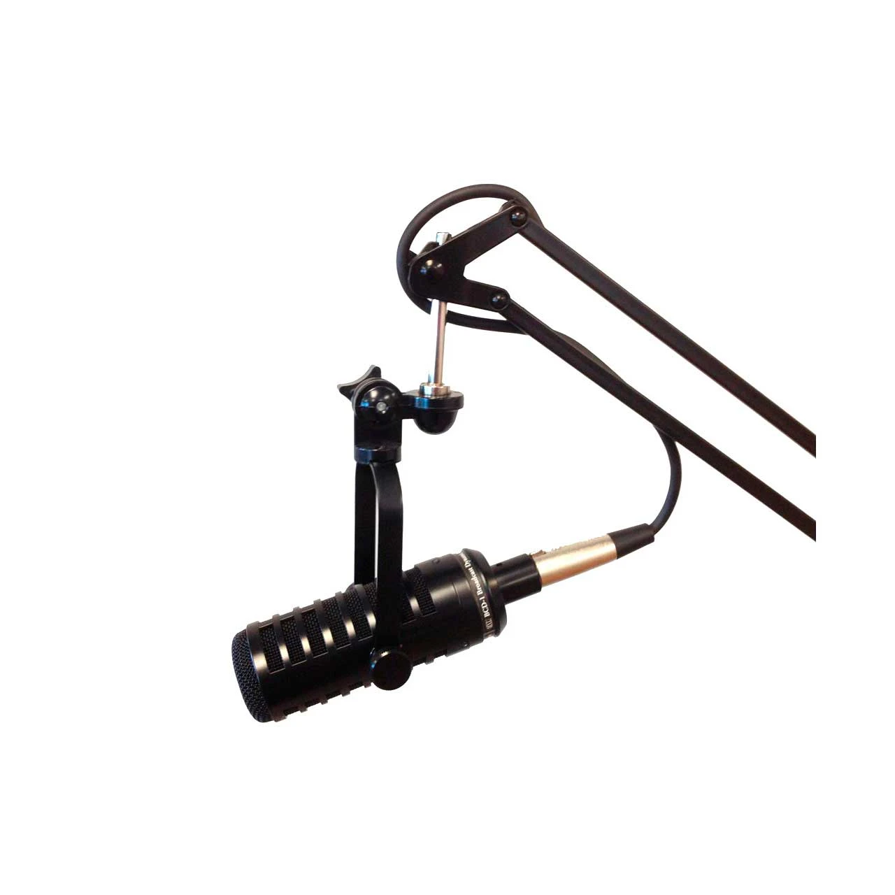 A heavy duty, articulating mic boom arm. Includes surface mount and clamp mount. Black.