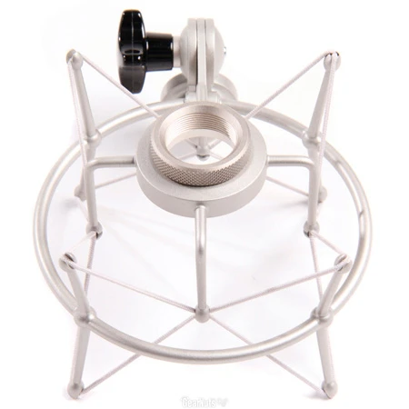 Shockmount has a swivel mount with a 5/8″-27 female thread, plus a thread adapter to connect to 1/2″- and 3/8″ stands.