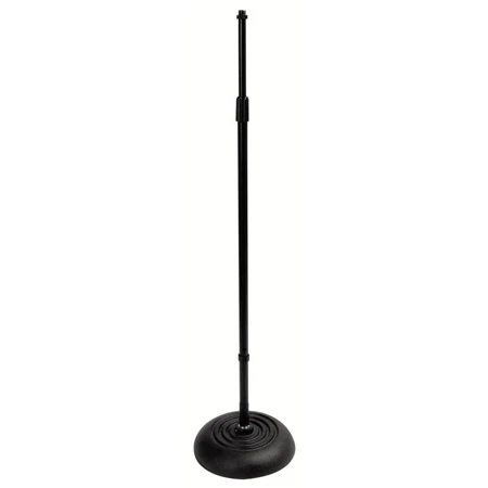 The 10″ round base is constructed from sand-cast steel for strength. Six rubber feet on the underside of the base keep the stand stable. A die-cast steel mid-point clutch effortlessly allows height adjustments from 34″ to 60″. The entire stand sports a scratch-resistant finish and is built to last gig after gig.
