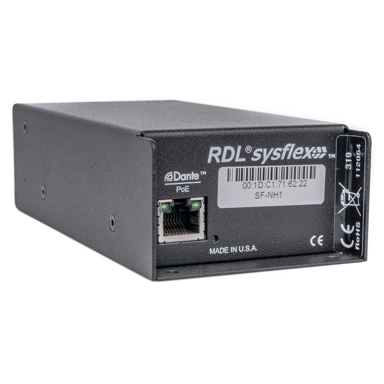 The SF-NH1 is PoE powered. Valid PoE power and synchronization to the Dante network is indicated by a green LED visible from the front of the unit. The SF-NH1 is constructed in a durable, professional all-metal enclosure suitable for free-standing, surface-mounted or rack-mounted operation. This full-featured SYSFLEX product is engineered and manufactured in the U.S.A for continuous duty in demanding installations. The versatility of SYSFLEX products adds enormous flexibility in the design and installation of professional A/V systems.