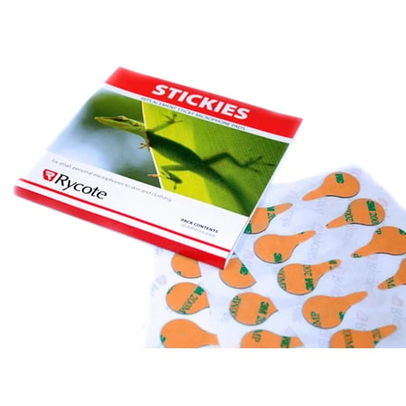 The “Stickies” are our new disposable mounting system for personal (lavalier) microphones. The Stickies come supplied in packs, with 3 sheets of double-sided adhesive pads (10 pads per sheet – 30 pads total). The mounting pads, are double-sided adhesive pads. The adhesive materials used have been sourced from the medical industry, and are both suitable for use on fabrics & skin. The pads are simply peeled from a sheet, and pressed onto the skin or clothing. The top liner can then be peeled from the pad. The microphone is then simply pressed onto the adhesive pad, and held in place with the adhesive coating. The two adhesive surfaces of the pads sandwich a soft fabric, this prevents the mount for creaking when the mic is attached. For situations where the microphone is exposed to heavier windnoise, we have also introduced the “Overcovers”. The Overcovers work in exactly the same way, but with a small fur disc as the windshield instead of fabric. Learn more. If you need mount your microphone on clothing or underneath clothing, we also now have the “Undercovers”. These use the same adhesive pads, plus soft fabric disposable discs to protect the mic from rustle. Check out the Rycote Fur discs. The 1″ diameter (25mm ) fur discs windshields, are made from an extremely soft 3/8″ (10mm) long fur. The fur helps to prevent some clothes rustle and windnoise. RYC-065505:: Each pack is supplied with 3 colors of fur discs – 1 of each color 1 Grey 1 Black 1 White