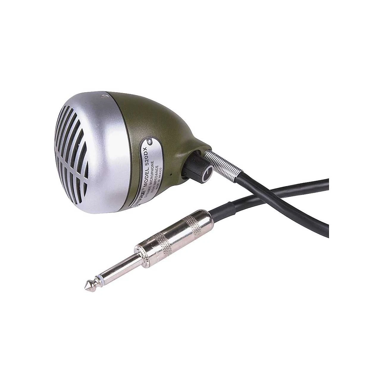 Contoured to fit comfortably in the palm of your hand, the Model 520DX “Green Bullet” microphone produces the unique sound that has made it a legend among harmonica players.The 520DX features a volume control knob at the base of the microphone that allows users to make adjustments to suit their needs during live performance. An attached cable with a standard 1/4-inch plug allows the microphone to be connected to a high-impedance device. Contoured to fit perfectly between harmonica and hands, it can also be used for distinct, lo-fi vocals.