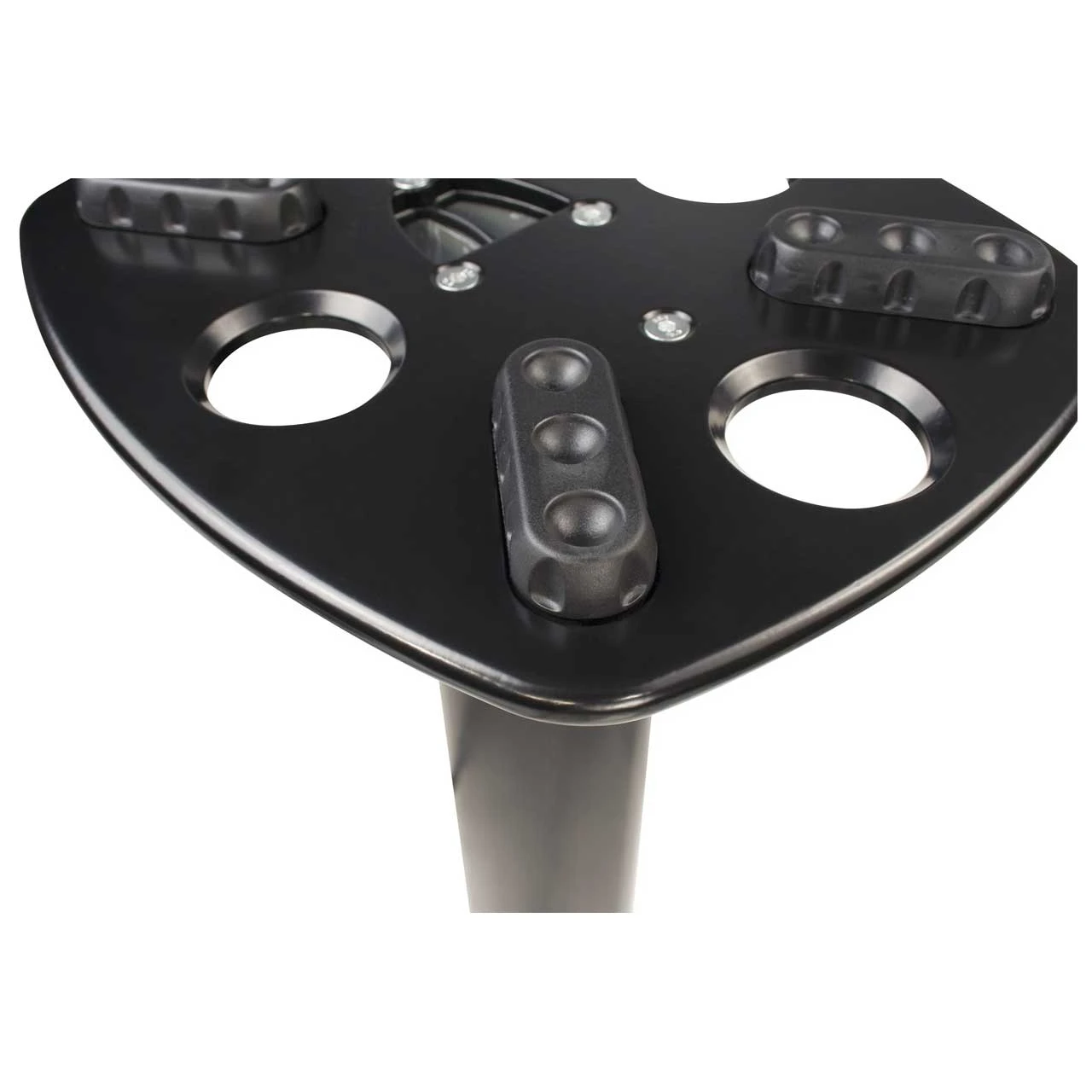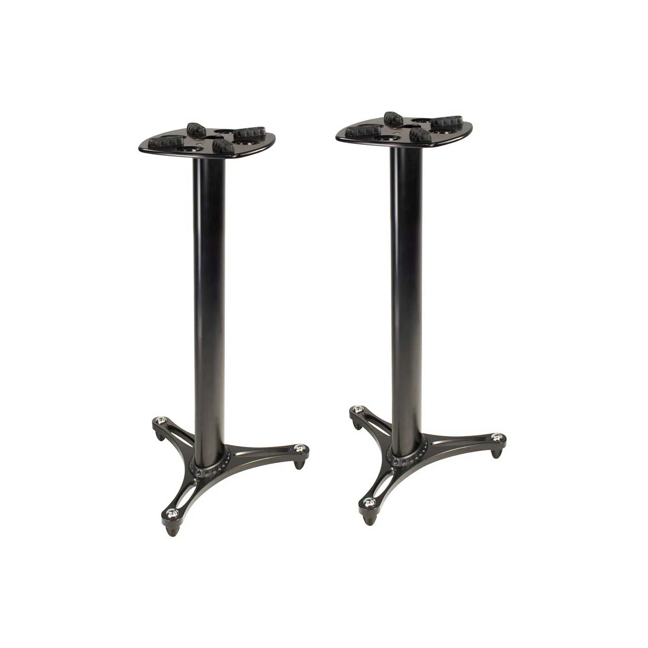 The MS-90/36B Series studio reference monitor stands from Ultimate Support offer unparalleled innovation and strength for professional, project, and home studios alike. The MS-90/36 is a 36″ tall monitor stand solution that provides surface decoupling via top mounted rubber decoupling pads and spiked, rubber covered feet. Three internal channels provide the option to pass cables through the base of the stand, while a larger internal channel allows you to add shot or sand for additional absorption and weight. The MS-90/36 is available in Red (MS-90/36R) and Black (MS-90/36B.)