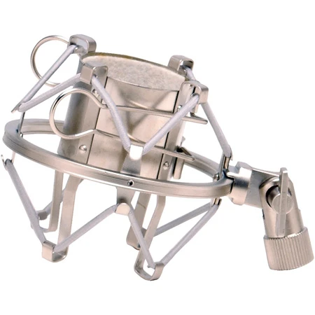 The SM-3 is an elastic spider type isolation shock mount with a large felt lined spring-clamp microphone holder. Prevents most shock and vibration noise from affecting microphone performance. Adjustable angle can be locked into position using locking knob. Large sub-frame, for extra stability, is suspended with two encased elastic bands. Fits most cylindrical microphones from 42 mm (1.65″) to 48 mm (1.89″). Standard 5/8″-27 Female metal microphone stand adapter. Champagne Gold powder coat finish.
