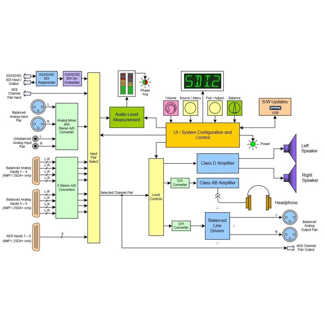 Ultra-compact, the AMP1-2SDA+ fits perfectly in a network facility or OB truck live event and is ideal for a range of applications where basic, but reliable stereo audio monitoring is required.